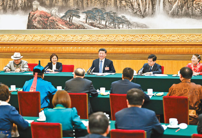 连日来,从政协联组会上的坦诚交流到人大审议中的真情互动,习近平总书记同来自祖国各地、社会各界的代表委员们共商国是,在交流中增进了共识,在讨论中凝聚着力量。
