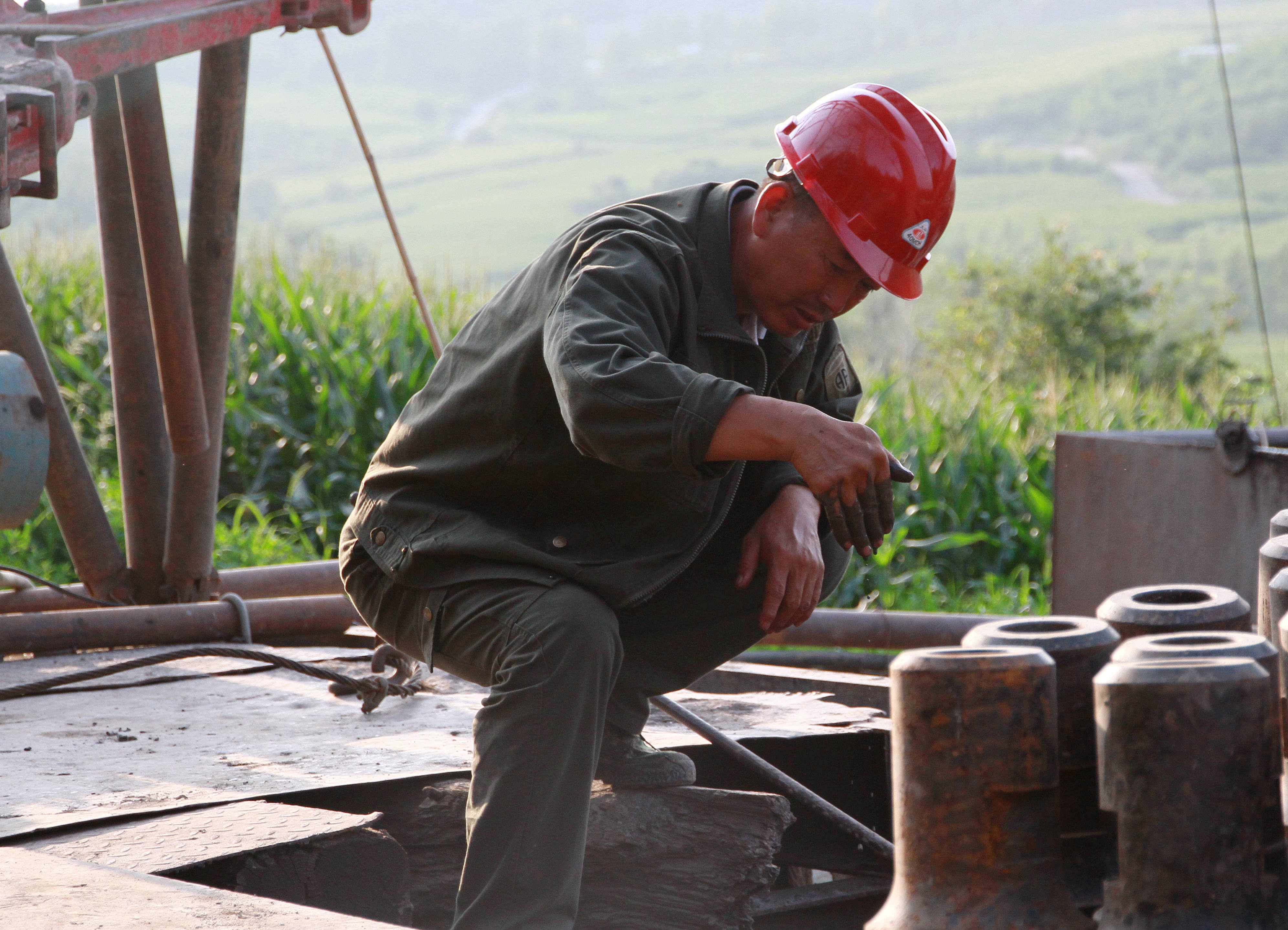 2013年,陈合才患上了眼底肿瘤,队里领导硬逼他到外地治疗,他却说啥也不肯去。当时邱家勘探会战已拉开帷幕,陈合才和工友们带着钻机第一个上山——从地质队本部到钻机所在的山下,直线距离100多里,而且要翻过三道沟坡。钻机搬家时正逢雨季,给设备运输带来很大困难。每天早晨天刚亮,陈合才就和工友们出发了,直到天黑以后才能返回,有时遇到特殊情况,常在晚上八九点钟还不能回到住地……勘探项目开钻后,陈合才带领工友们也一样吃住在现场,夜以继日地钻探不停。