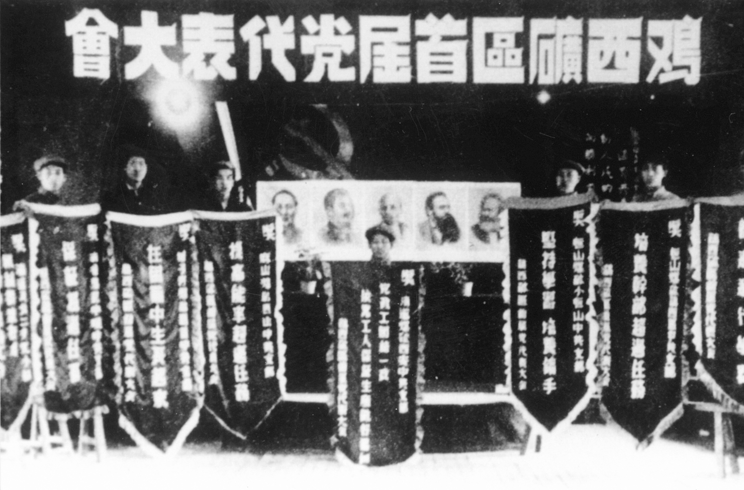 1948年10月,中共鸡西矿区委员会成立。图为鸡西矿区首届党代会会场