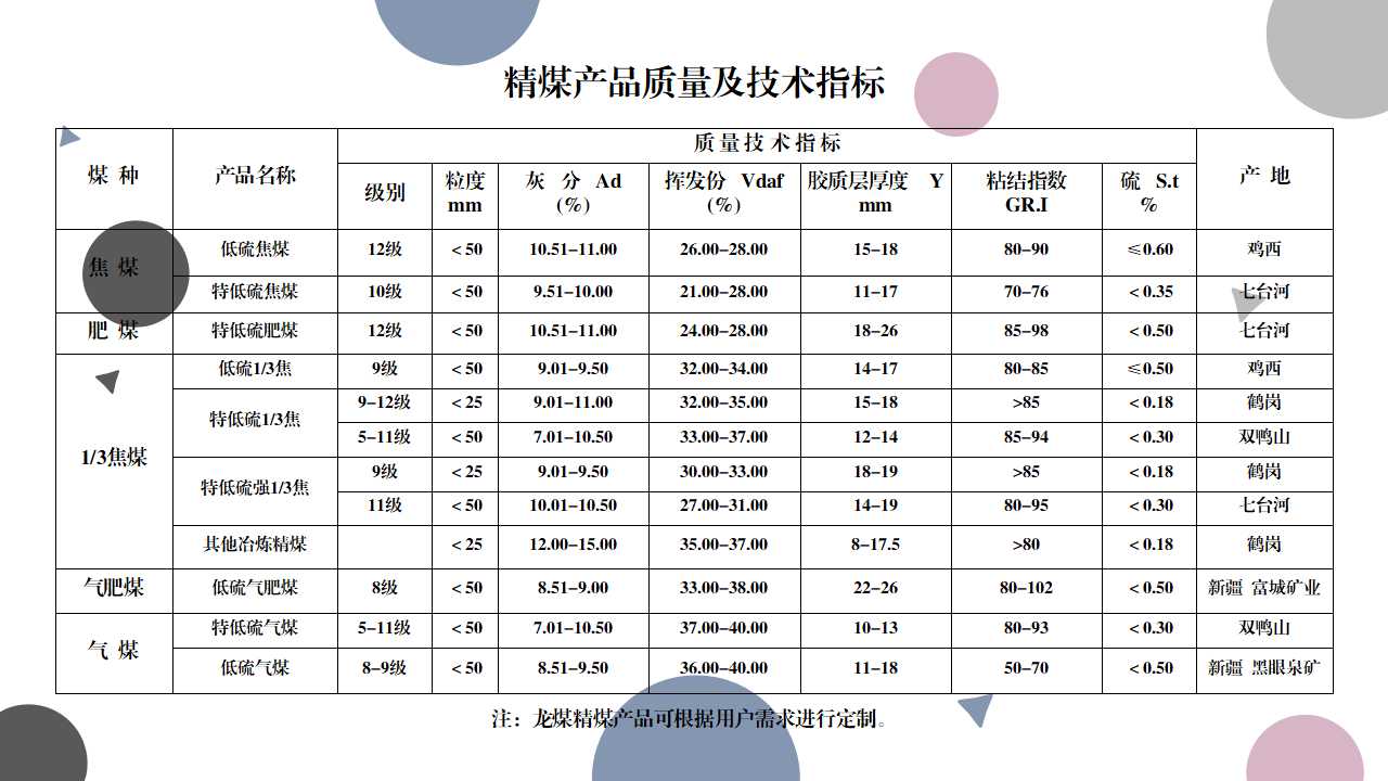 龙煤集团煤炭产品简介