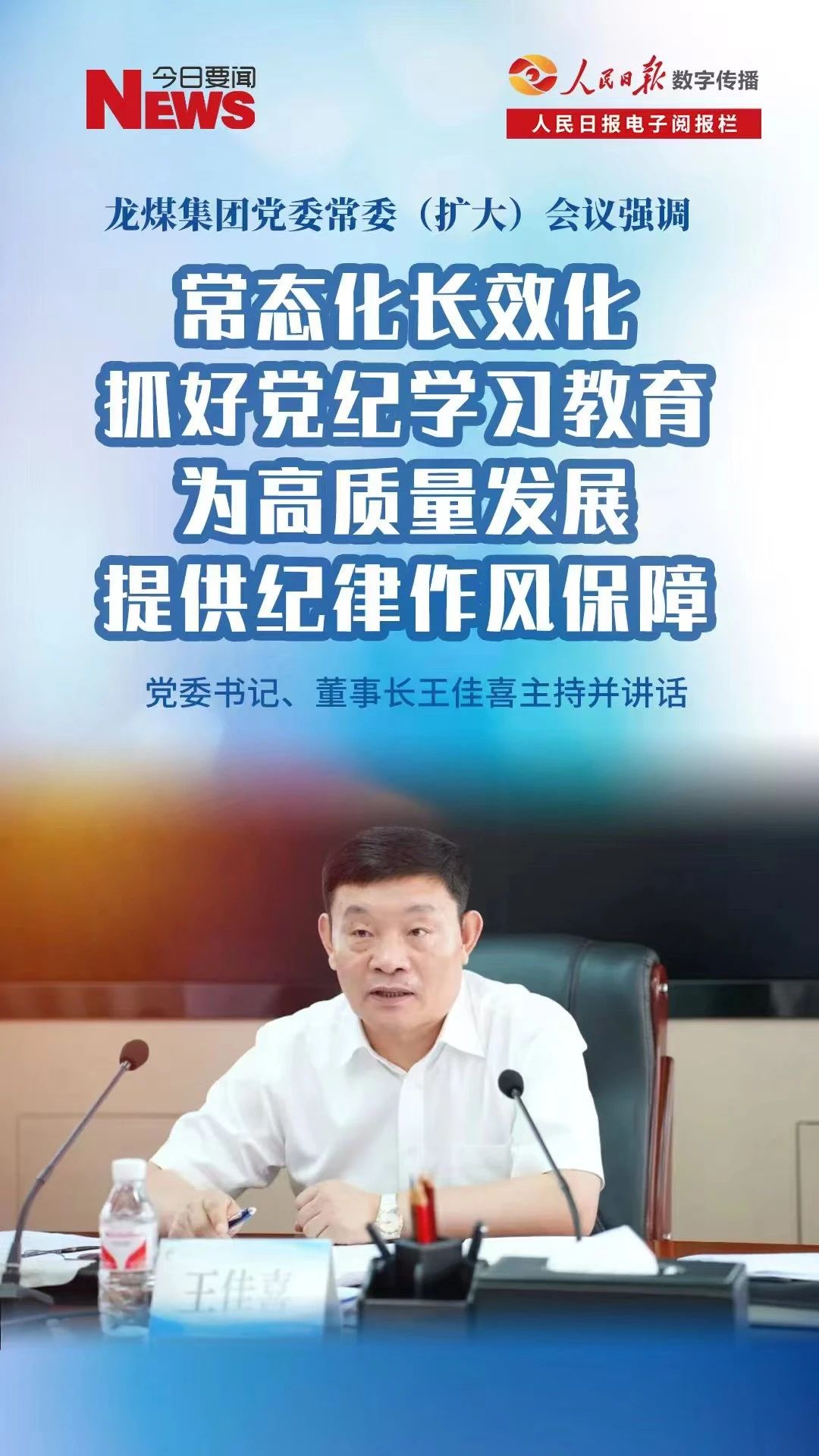 会议强调,开展党纪学习教育是党的自我革命的形势所需、是深入推进全面从严治党的重要举措,龙煤集团深入开展党纪学习教育是实现安全生产、推进深化改革,完成目标任务的必要保障和重要法宝。集团上下必须把党纪学习教育作为“终身课题”,紧扣学纪知纪、明纪律己、守纪正身,持续推动党规党纪内化于心、外化于行。