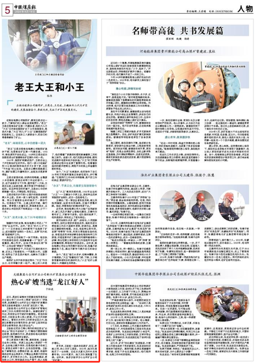 近日,黑龙江省精神文明建设指导委员会办公室公布了2024年二季度“龙江好人”评选结果,龙煤集团七台河矿业公司新兴矿家属协管员王盼盼荣登助人为乐类“龙江好人”榜。