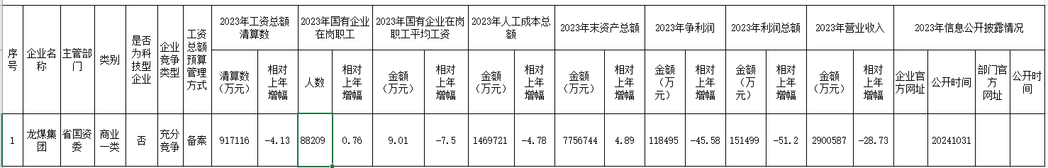 黑龙江省2023年度省属国有企业工资总额执行情况汇总表