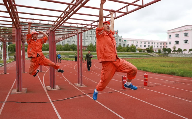 国家矿山应急救援鹤岗队队员正在加紧训练